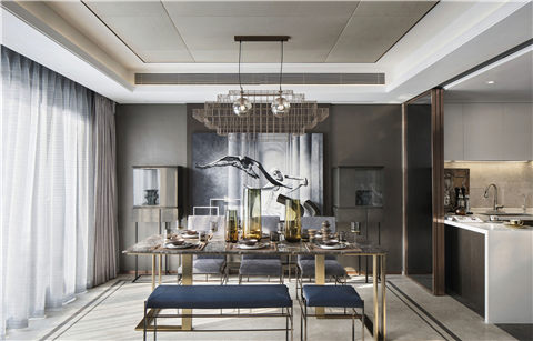 這個方案也把陽臺做成小書房,如果認為開放的設計會影響你的工作學習,隔壁有高級灰色的窗簾設計,可以把客廳和陽臺暫時隔開,桌子的背景墻采用這個條紋壁紙,組合精致的桌子和隔板