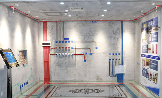 從原始水管進(jìn)入室內(nèi)30-50厘米以內(nèi)進(jìn)行水路改造,解決了開發(fā)商所布置管不達(dá)標(biāo)的隱患,上水管進(jìn)入衛(wèi)生間后,墻上走管,水管距離地面30厘米左右處入墻。冷熱水管間距10厘米左右,避免冷熱水太近出現(xiàn)冷凝水,水路改造完畢必須進(jìn)行打壓測試確保管件無漏點。